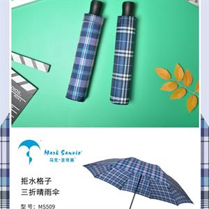 509马克雨伞 三折格子64*8K